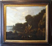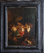 Der heimkehrende Jäger und die Magd, Oel auf Holz, Holland, 17. Jhrd.